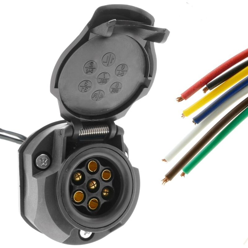 Spina per veicolo femmina a 7 poli con un rimorchio da 2 metri e un cavo per roulotte progettato per fornire un collegamento elettrico sicuro tra un veicolo trainante e un rimorchio o una roulotte. La spina femmina a 7 poli è compatibile con le spine maschio a 7 poli standard presenti su molti veicoli trainanti. Ha un livello di protezione ambientale IP44, il che significa che è resistente agli spruzzi d'acqua da qualsiasi direzione ed è protetto da oggetti solidi con un diametro superiore a 1 mm. Caratteristiche del prodotto: CARATTERISTICHE: Prese speciali per il collegamento elettrico tra veicoli e rimorchi o roulotte. Consente di trasferire diverse funzioni di illuminazione, come indicatori di direzione, luce di posizione, luce freno, ecc. a seconda dei poli che hanno i connettori. Ideale per ganci di traino, portabiciclette e roulotte. CARATTERISTICHE TECNICHE: Base presa per il collegamento elettrico tra veicoli e rimorchi o roulotte dotata di connettore femmina 7 poli e cavo