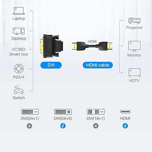 CABLEPELADO - Adattatore da DVI maschio a HDMI femmina, Dual Link (24 + 5 pin), adattatore bidirezionale DVI, 1080P, Full HDTV, compatibile con PS3/PS4, TV Box, BLU-Ray, proiettore, nero