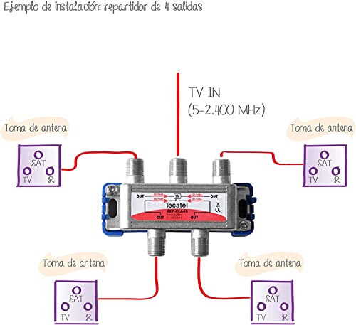 ✅[USO] Questo rivenditore o distributore viene utilizzato in installazioni in cui vogliamo dividere il nostro segnale per trasmetterlo su quattro diversi cavi per tre prese di installazione.
