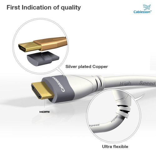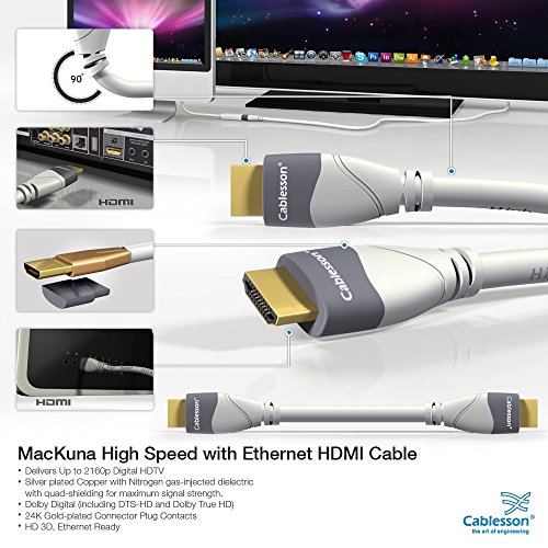 Cablesson MacKuna - Cavo 3 metri High Speed HDMI con Ethernet (New Version 1.4a 3D Ready con Audio Return e Ethernet Channel) fino a 1080p, compatibile con Sony PS3 XBOX 360 PC SKYHD Virgin Box Nintendo Wii U televisori LCD, Plasma e LED Full HD, colore: Bianco