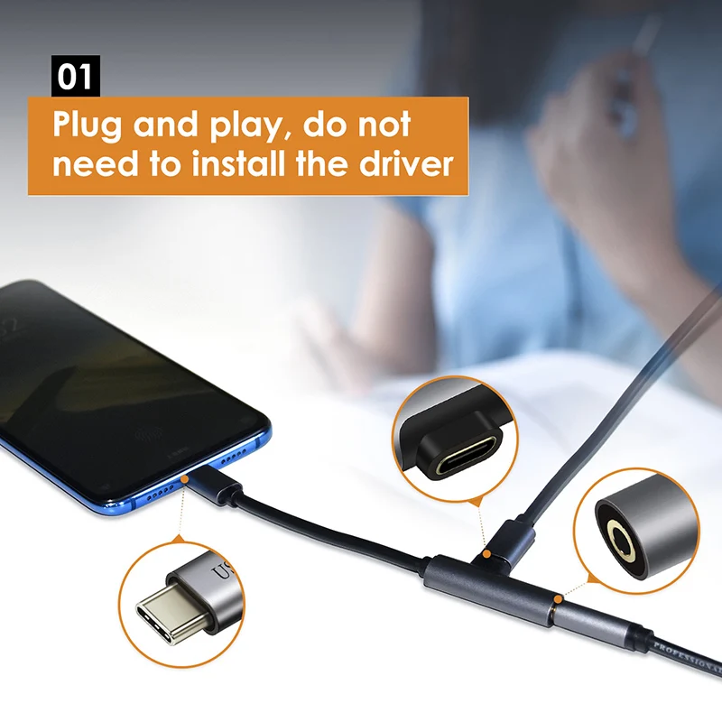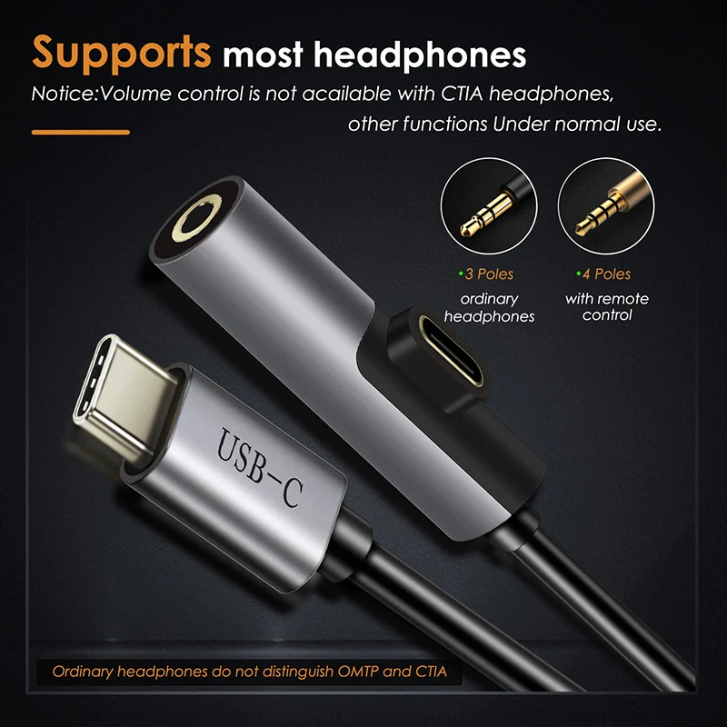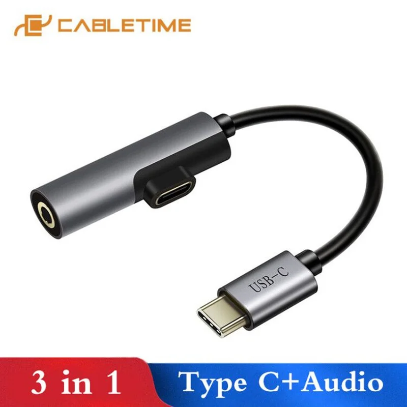 CABLETIME USB C to 3.5mm Aux USB Cable Earphone 2 in 1 USB C Headphone Adapter for Huawei Mate 30 20 P20 Samsung S10+ C017