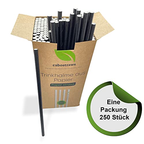 CABOSTRAWS Cannucce di carta ecologiche, colore nero, cannucce usa e getta per feste, matrimoni e compleanni, cannucce biodegradabili, 250 x 8 mm, 250 pezzi