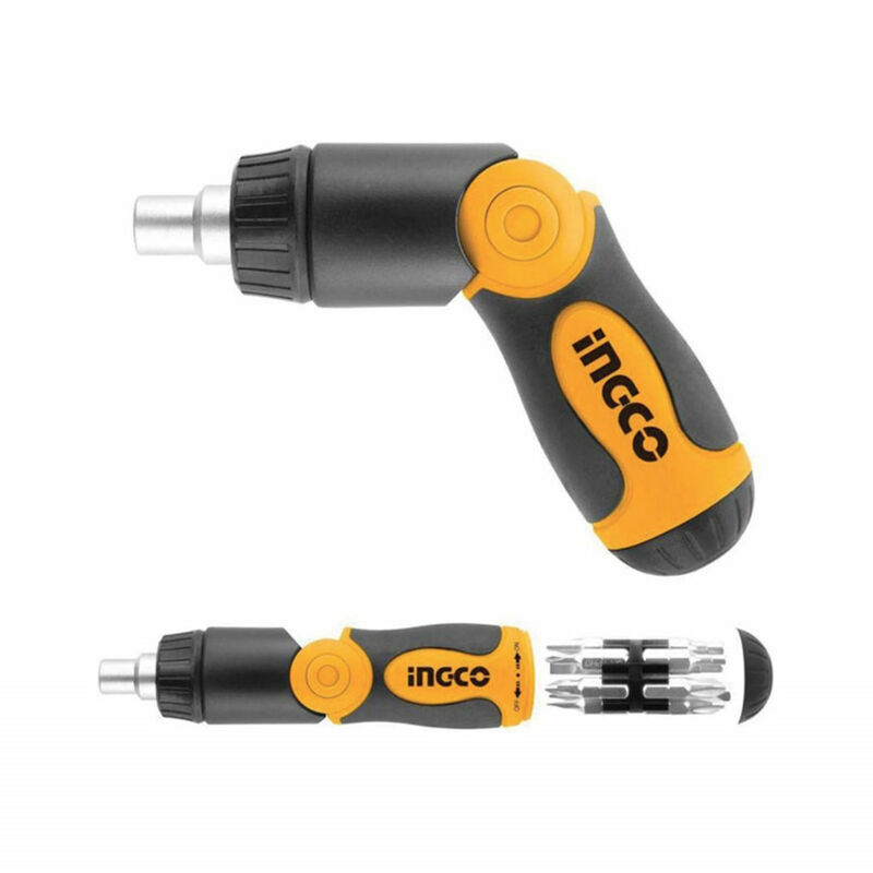 Inclusi nel set: Maniglia a cricchetto 1 pezzo INGCO Style Impugnatura pieghevole, cricchetto di alta qualità 12 pezzi 6,35 * punte per cacciavite da 25 mm Dimensioni: SL4, SL5, SL6, SL7, PH0, PH1, PH2, PH3, PZ0, PZ1, PZ2, PZ3 Materiale: CR-V Imballato in scatola