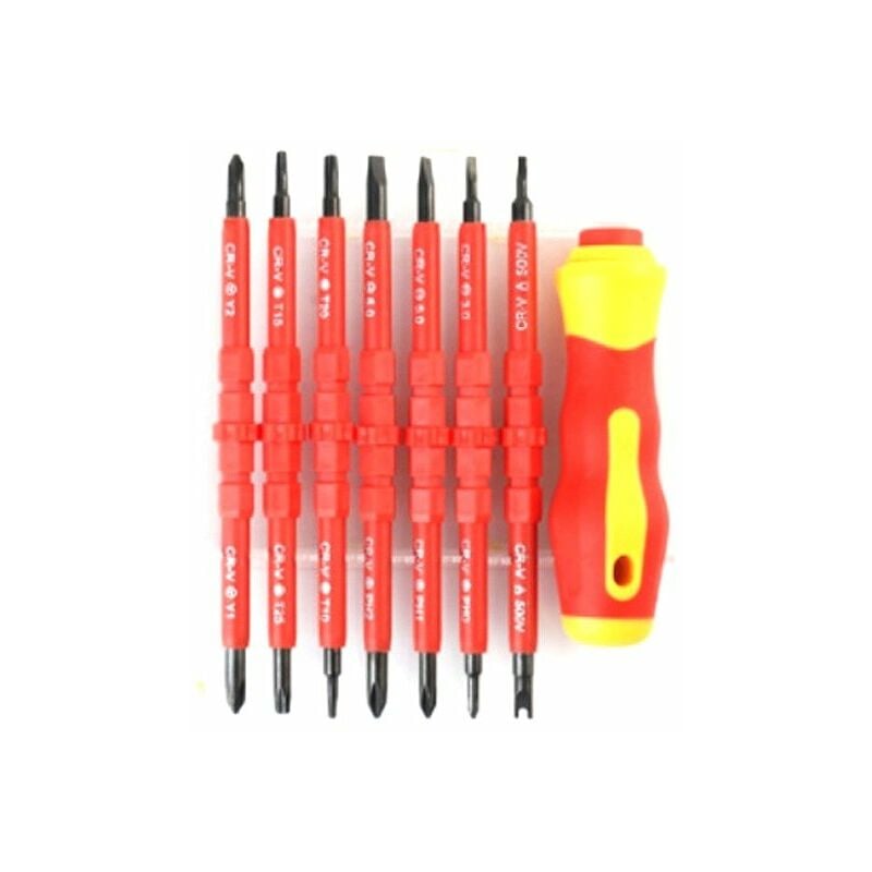 Versatile: ogni asta del cacciavite è contrassegnata con il modello corrispondente, è molto facile da distinguere e installare, per soddisfare le diverse esigenze lavorative. Imballaggio in scatola, facile da trasportare e riporre le parti. Forte: testa di cacciavite magnetico con magnetico, facile da Adsorbimento del timer come una vite metallica, per evitare la perdita di parti, più facile da usare. Cromo vanadio di alta qualità: lega di acciaio con trattamento termico, elevata durezza e buona tenacità e resistenza. Guscio lama: plastica resistente e materiale speciale che lo rende durevole e non si rompe facilmente. Maniglia ergonomica: con impugnatura ergonomica in TPR e pulsante su di essa, ti aiuta a operare molto facilmente.