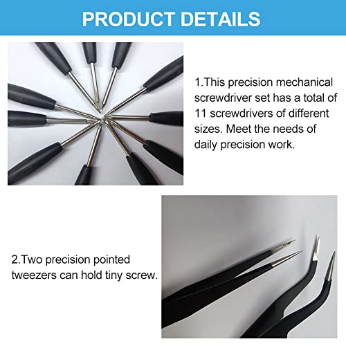 【Kit Cacciaviti Precisione】Le pinzette e il mini cacciavite Phillips sono realizzati in acciaio inossidabile di alta qualità. Pertanto, gli occhiali per cacciavite sono antiruggine e non facili da deformare. Ha una lunga durata.