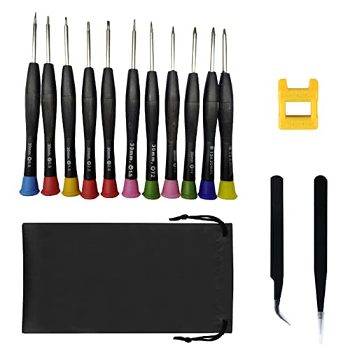 Cacciavite per Occhiali,Cacciavite Precisione,11 Pezzi Cacciavite Di Precisione,Set Di Piccoli Cacciaviti per Occhiali,Cacciaviti Magnetici Di Precisione Micro Riparazione+2 Pinzette+Magnetizzatore