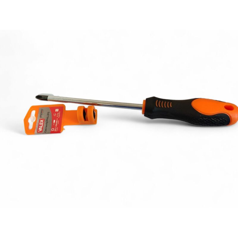 Cacciavite - Marca Valex - Phillips - Punta magnetica - Impugnatura morbida - Punta PH3 Cacciavite phillips Valex lama in acciaio cromo venadio, punta PH3 magnetica brunita, impugnatura morbida bimateriale con punti appoggio in rotazione per dito. Lama diametro 8x150 mm.