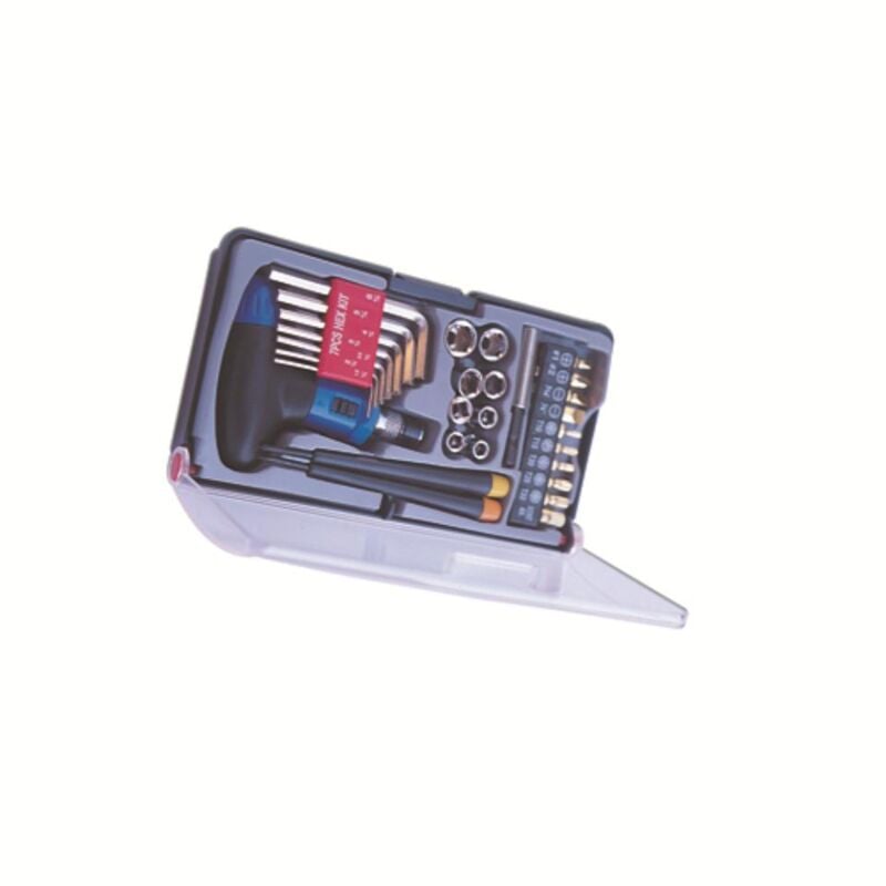 KOMBO - Kit Cacciavite Portainserti Astuccio Portatile con 8 Bussole 7 Brucole 10 Inserti KIT Cacciaviti Utensili a Mano