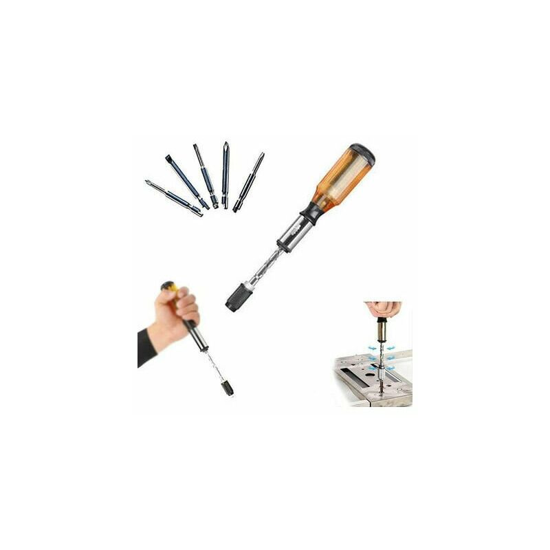 Nome prodotto: cacciavite Materiale: acciaio legato + PP Peso: 124 g Quantità imballo: 1 pezzo Cacciavite semiautomatico giallo Premere la maniglia, l'asta del cacciavite ruota automaticamente per ottenere l'effetto di stringere o allentare il cacciavite. Più veloce di altri cacciaviti. Questi cricchetti a spirale sono progettati per essere facili da indossare e far riposare il polso. I cacciaviti a cricchetto push-pull possono facilmente risolvere spazi ristretti, posizioni profonde delle viti e viti difficili da raggiungere. Operazione di spinta con una sola mano per l'uso dove altri cacciaviti non possono. Basta premere il cacciavite per stringere o svitare la vite, il che migliora notevolmente l'efficienza del lavoro. Facile da smontare e montare. Semplice tipo autobloccante, inserisci il trapano dopo aver sbloccato la scatola scorrevole e il trapano si bloccherà facilmente. La scatola autobloccante può essere fissata durante la rotazione, facilitando il trasporto. Presa comoda