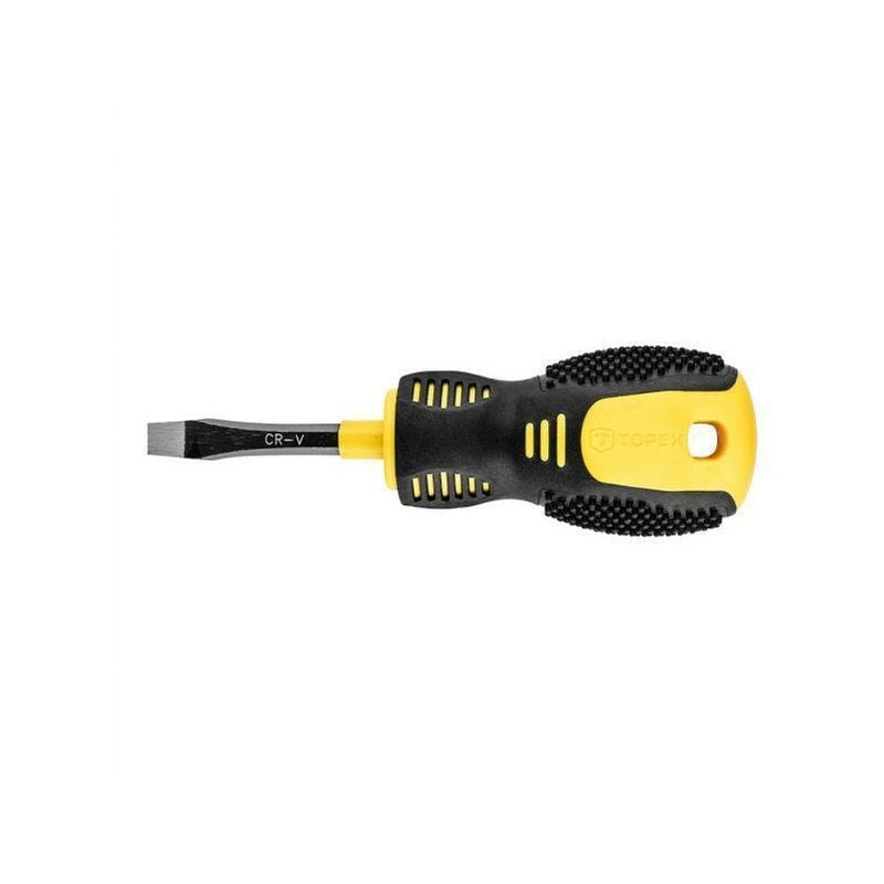 Cacciavite a taglio TOPEX - 5,0 x 38 mm, GTO 39D803 Cacciavite a taglio TOPEX in acciaio al cromo-vanadio, resistente e duraturo. Impugnatura ergonomica in plastica con rivestimento antiscivolo per garantire comfort e sicurezza. Lunghezza lama: 38mm Misura testa piatta: 5 Tipo: Cacciavite Tipo di punta: Piatta, spaccata Numero di pezzi: 1 Caratteristiche: Impugnatura antiscivolo Materiale: Acciaio al cromo-vanadio Modello: TOPEX 39D803 Sistema di misurazione: Metrico