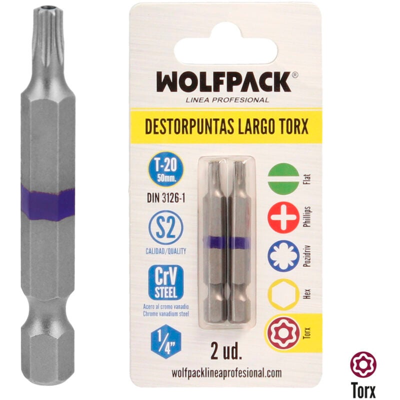 Cacciavite Maurer Torx T-10 lungo. - Misura: T20. - Presa Torx. - Punte rettificate, minimizzano il rischio di rottura. - Realizzato in acciaio al cromo vanadio s2, conferendogli la massima durezza. - 2 pezzi. - Articolo noto come punte per cacciavite, punte per cacciavite esagonali.