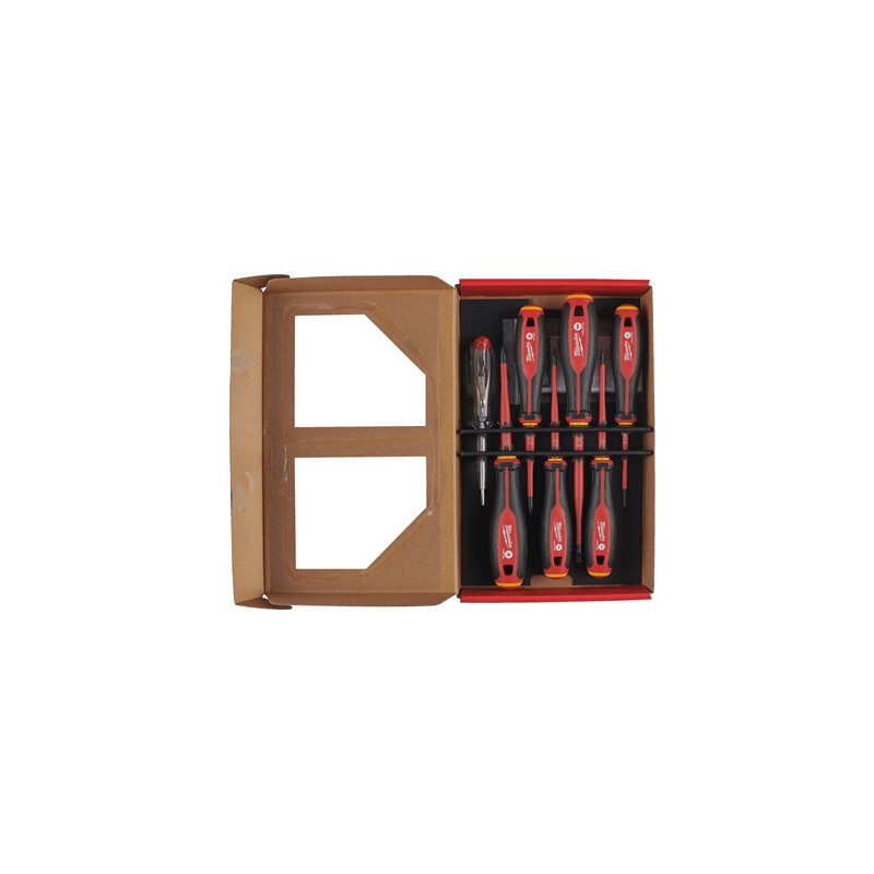 Dettagli: Testato VDE a 10.000 volt e garantito a 1.000 volt Rivestimento sottile e isolato per applicazioni in spazi ristretti Impugnatura a tre lobi ottimizzata per il massimo comfort e potenza di serraggio Dimensioni incise al laser su impugnatura e punta per una rapida identificazione Impugnatura antirollio su 3 lati Foro per cordino per il fissaggio alla gamma di DPI Milwaukee SL2.5 / SL3 / SL4 / SL5.5 / PH1 / PH2 e tester di tensione Caratteristiche: Contenuto: SL2.5 / SL3 / SL4 / SL5.5 / PH1 / PH2 e tester di tensione