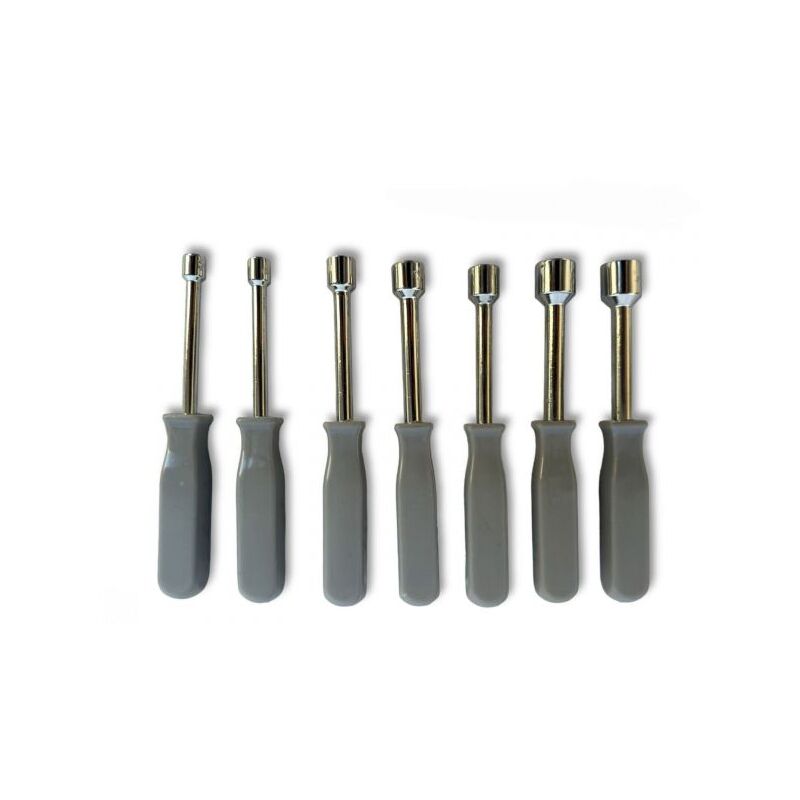 Descrizione prodotto Set 7 cacciaviti a bussola giraviti per dadi esagonali 5-13mm 140mm YS-21029 Set composto da 7 cacciaviti a bussola con testa esagonale. Misure: 5, 6, 8, 9, 10, 11 e 13mm Lunghezza totale: 140mm Lunghezza manico: 80mm