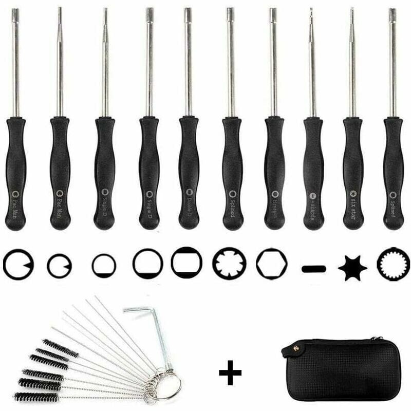 Realizzato in resistente acciaio inossidabile con impugnatura ergonomica e asta in metallo. Una custodia con strumenti protettivi impedisce anche la diffusione di tutti i cacciaviti Lunghezza totale: 6-2,5 cm (asta di metallo: 7,6 cm). Manico in plastica: 3-2,5 cm. È dotato di maniglie quadrate che consentono di modificare le impostazioni di fusione con 1/4 di giro. 1/4 di giro è solitamente l'aumento desiderato quando si cerca di mettere a punto un carburatore. Il set più completo di strumenti per carburatore, include tutti gli strumenti necessari per mettere a punto e pulire il tuo normale motore a carburatore a 2 tempi. Adatto per tipi di segni. Cacciavite per la regolazione del carburatore, 10 pezzi, include: Pac Man, Pac Man Small Head, Single D, Small Single Head, Double D, Hex, 7 denti scanalati, 21 denti scanalati e la nuova forma del cacciavite / 6 stelle < /li> Descrizione del prodotto Contenuto della confezione: 1 borsa per il trasporto. 1 cacciavite a forma. 1 cacciavite a