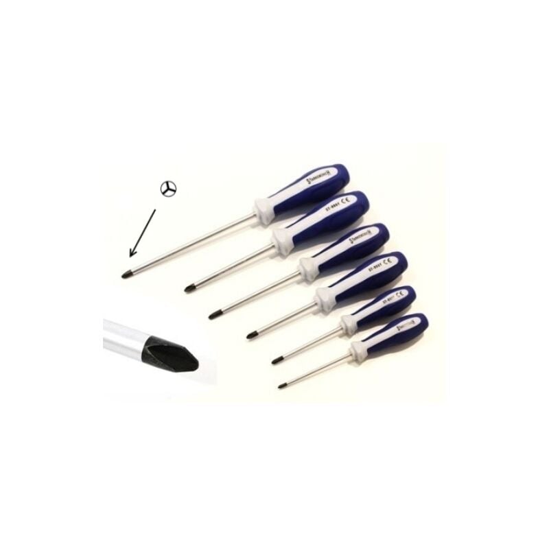 Set cacciaviti taglio a tre punte/a Y/triwing/trigram indispensabili per manutenzione piccoli elettrodomestici. Il terminale del manico e la piena lunghezza della barra puòessere martellata. Manico ergonomico antiscivolo con resina di protezione e raccordo struttura a doppia iniezione. Stelo in acciaio cromo-vanadio tipo 6150 solido e inossidabile. Punta magnetica calamitata. Caratteristiche Tecniche - Dimensioni (mm): Y0 x 75x3 Y1 x 75x4 Y2 x 75x5 Y2 x 100x5 Y3 x 100x6 Y3 x 150x6
