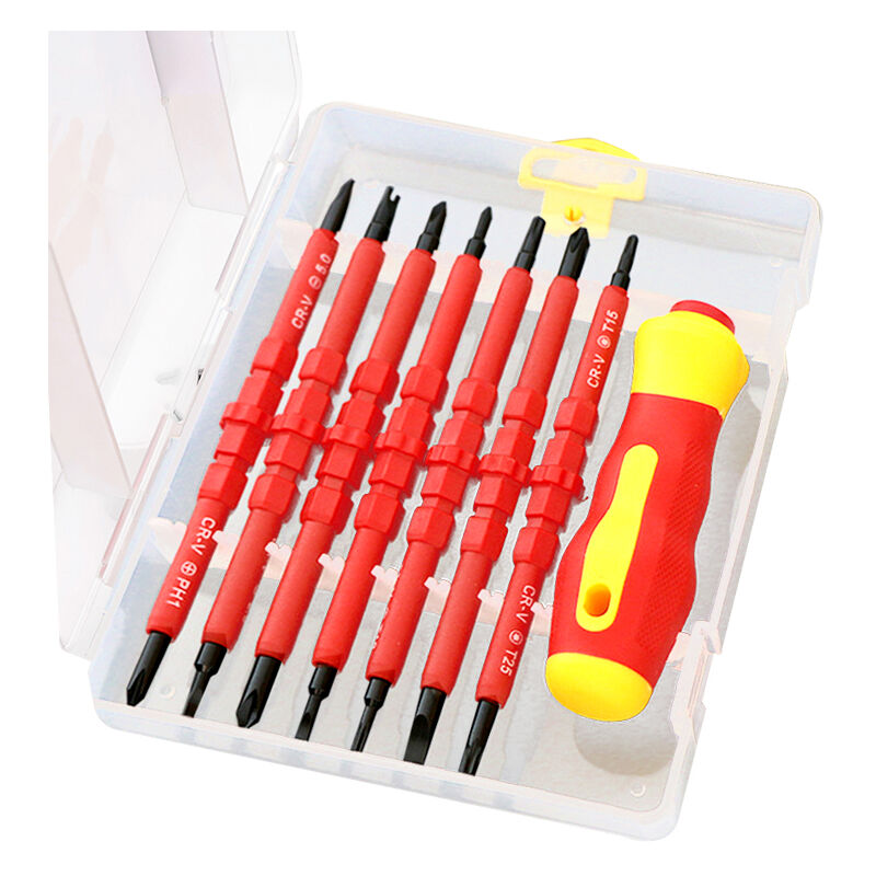 Il pacchetto include: 1X T10 & T20 1X T15 & T25 1X -3.0 & + PH0 1X -5,0 & + PH1 1X -6,0 & + PH2 1X Y1 & Y2 1X a forma di U2.6 e 4.0 Cacciavite a manico 1X Totale: 8 pezzi