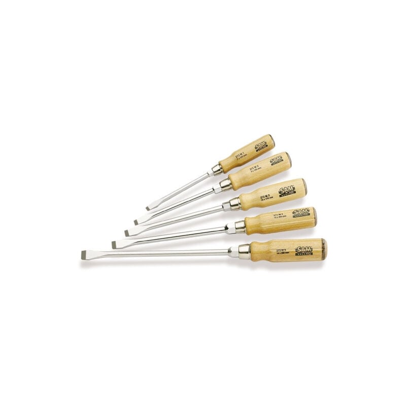 Dettagli: set di 5 cacciaviti con manico in legno per viti con intaglio, meccanico. Peso: 562 g Caratteristiche: Numero di pezzi: 5 Denominazione: 3,5X75-5,5X100-6,5X125-8X150-10X175 Peso (g): 540