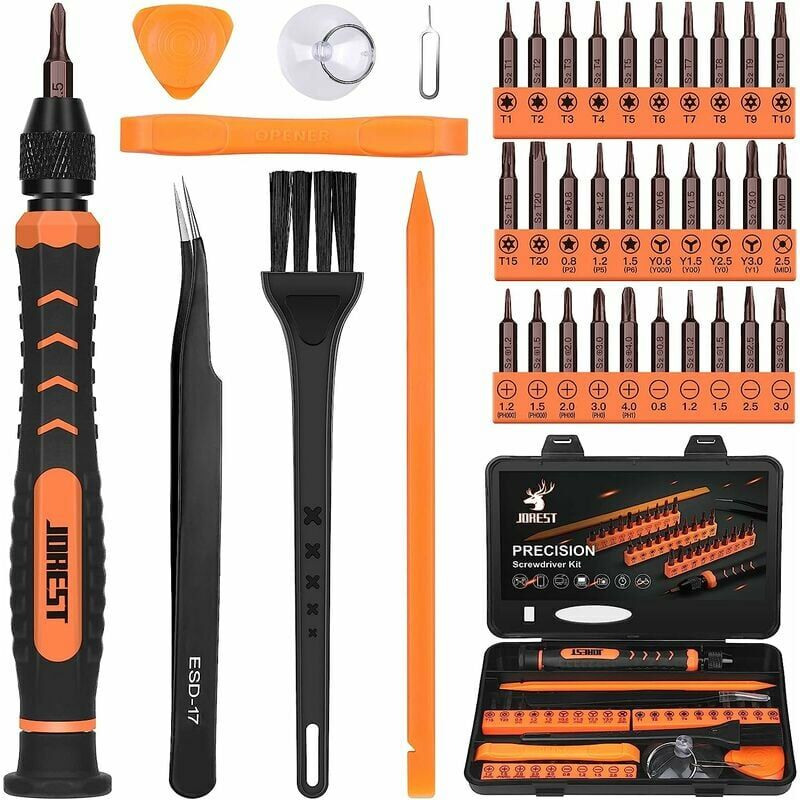 Set di cacciaviti meccanici di precisione: il set di cacciaviti da 38 pezzi include 30 punte per cacciavite, PH000 (+1.2) PH000 (+1.5) PH00 (+2.0) PH0 (+3.0) PH1 (+4.0), -0.8 -1.2 - 1.5 -2.5 -3.5 0, Torx T1 T2 T3 T5, TR6 TR7 TR9 TR15 TR20, Y000(Y0.6) Y00(Y1.5) Y0(Y2.5) Y3(Y3.5) Manico lungo Spudger A pinzette, pennello e una ventosa con un ditale per la scheda SIM. Ampia applicazione (+1.5/2.0 P2 Y0.6 MID2.5 sono adatti per iPhone 7/8/X/XR/11/12/13 +1.2/1.5/2.0/3.0 T2/3/4/5 P2 sono utilizzati per Samsung/Huawei e altri telefoni +1.5/2.0/3.0 T3/4/5/6/9 sono utilizzati per iPad/Mini + 1.2/1.5 /2.0/3.0/4.0 T2/3/4/5 -2.5 sono utilizzati per Huawei/Honor e altri tablet P2/5 /6 +1.5/2.0/3.0/4.0 T3/4/5/6/7/8 /9 Y2.5/3.0 sono utilizzati per Macbook/Air + 1.5/2.0/3.0 T5 sono per Kindle T6/15 Ring Video Doorbell/Video Doorbell 2/elite. Ampia applicazione: T8 +1.5/ 2.0/ 3.0 vengono utilizzati per i controller PS3/PS4/PS5 e le console T6/8/10 vengono utilizzate per le serie Xbox 360/Xbox One/Xbox