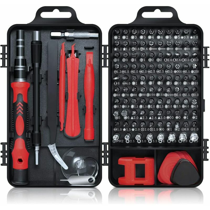 Una vasta gamma di 115 più 1 set di cacciaviti: può essere utilizzato per elettrodomestici come televisori, condizionatori, ventilatori, frigoriferi, ecc. Può essere utilizzato anche per lo smontaggio e la manutenzione di telefoni cellulari, fotocamere digitali e orologi, laptop e console di gioco. Le necessità quotidiane di un cliente. Il set di cacciaviti è dotato di una custodia in plastica antiurto. Il layout è progettato di conseguenza, la posizione della tavola è uniforme e le parti sono fissate saldamente. Disponibile in estensioni morbide e rigide per angoli stretti. È inoltre dotato di clip antistatiche e impugnature in silicone antiscivolo per tutte le occasioni. Materiale professionale garantito: la testa in cromo vanadio ha una durezza di 55-60HRC. La testa del cacciavite è magnetica, con garanzia di buona qualità e facilità d'uso. Strumenti utili per il fai da te: set di cacciaviti disponibile in estensioni morbide e dure per angoli stretti e con pinzette antistatiche e