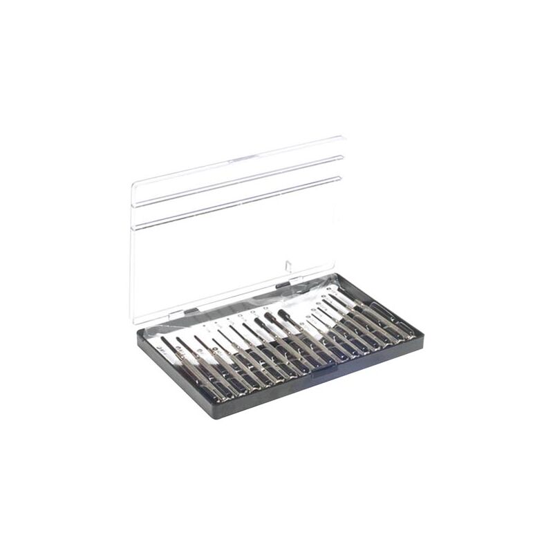 Funzioni Manipulationssicher Ja Informazioni sul prodotto Primärfarben Grau,Detaillierte Primärfarben Metallisch,Zusätzliche Farben Schwarz,Tiefe des Produkts 25 mm,Höhe des Produkts 140 mm,Breite des Produkts 200 mm,Gewicht Produkt 260 g,Material Stahl Proprietà fisiche Anzahl der Stücke 16,Magnetisch/nicht-magnetisch Nicht magnetisch,Ergonomischer Griff Nein,Kasten Typ Werkzeugkasten Proprietà d'uso Anti-Rutsch-Griff Ja,Abrollschutz Nein Dimensioni dell'imballaggio 1 Contenuto della fornitura Inhalt des Sets 6 x flach: 1 mm, 1,4 mm, 2 mm, 2,4 mm, 3 mm, 3,8 mm 3 x Stern: 1,5 mm, 2 mm, 2,5 mm 4 x Kreuz: PH000, PH00, PH0, PH1 3 x Buchse: 3 mm, 4 mm, 5 mm, Schutzhülle Ja