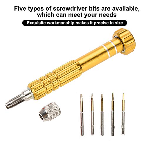 Set di cacciaviti di precisione, impugnatura per cacciavite con 5 punte di precisione Occhiali da vista Set di precisione per telefono(Oro)
