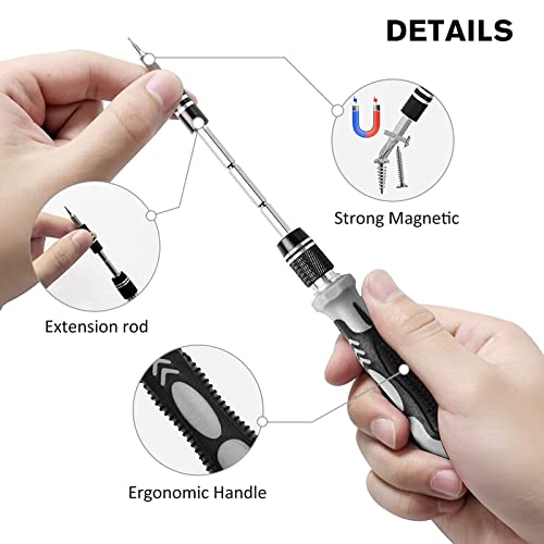 【Design Eccellente e Professionale】: Set di cacciaviti magnetici con una scatola di conservazione in materiale PP, facile da trasportare e riporre. Spazio di archiviazione ragionevolmente progettato, le dimensioni dello spazio e degli accessori sono coerenti con il modello richiesto, quindi le parti non sono facili da cadere. Migliora le tue riparazioni in modo efficace e preciso.
