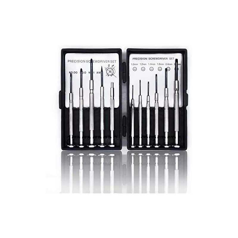 Set di cacciaviti di precisione - 11 pezzi e custodia. Questo versatile mini set di cacciaviti è ideale per riparare occhiali, orologi, telefoni e giocattoli. Il set include un'ampia gamma di punte per cacciavite adatte alla maggior parte delle viti e accessori. Ideale da tenere in macchina, portare in borsa o riporre nella cassetta degli attrezzi.