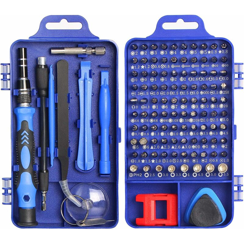 Kit di cacciaviti di precisione professionali - Il set di cacciaviti di precisione 115 in 1 ha diversi tipi di strumenti, progettati per riparare dispositivi di gioco (Nintendo), computer, dispositivi mobili e altri oggetti di precisione come orologi, occhiali, gioielli e giocattoli, ecc. . Alta qualità e ampia applicazione - Il set di cacciaviti è realizzato con materiali di alta qualità, come acciaio CR-V (punte da 90 pezzi) e acciaio inossidabile (8 pezzi di mini ugelli e pinzette), che sono durevoli e robusti per un lungo periodo di utilizzo. Diversi tipi di punte, come cacciaviti Phillips, Torx, Pentalobe e Y, si adattano a molte viti di forma per soddisfare tutte le esigenze Design compatto e portatile - Il set di strumenti di riparazione viene fornito con una custodia che fornisce protezione totale. Il design pratico e assortito rende il mini set di cacciaviti di precisione più comodo da trasportare e utilizzare Funzione magnetica e prestazioni - La punta magnetica