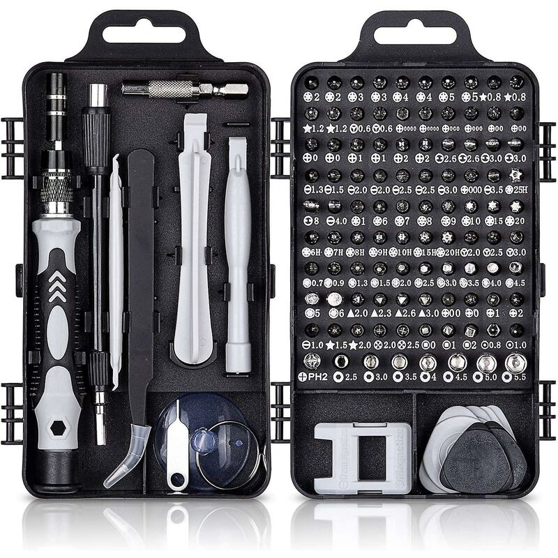 Set di cacciaviti recentemente aggiornato:: questo set di cacciaviti è uno strumento di riparazione ideale, le punte sono state estese a 98 pezzi e contiene molti strumenti di apertura e riparazione per dispositivi elettronici, PC, computer, iPhone, tablet, iPad, laptop, orologi, ecc. Elevata superficie e precisione del cacciavite:: questo set di cacciaviti contiene molte punte per cacciaviti comuni e speciali, il materiale è CRV e temprato 55-60 HRC e rivestito di nichel. Nuova impugnatura: L'impugnatura è allargata e dotata di un materiale siliconico, ergonomico e antiscivolo. Il set di cacciaviti è magnetico, può essere esteso di 24 cm e piegato a 360 gradi. Posizionamento professionale e portatile:: Tutti i bit sono in una robusta mini scatola in PP e ognuno ha la sua posizione, può essere aperto su entrambe le parti. Il mini set di cacciaviti meccanici di precisione può essere messo in tasca.