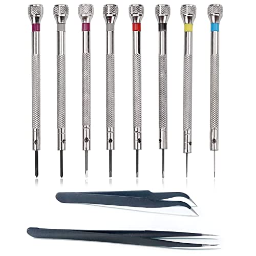 Set di cacciaviti per riparazione micro: il set di mini cacciaviti di precisione contiene 6 cacciaviti a taglio (0,6 mm, 0,8 mm, 1,0 mm, 1,2 mm, 1,4 mm, 1,6 mm). 2 cacciaviti a croce (1,4 mm, 1,6 mm). 2 pinzette per riparazione orologi.
