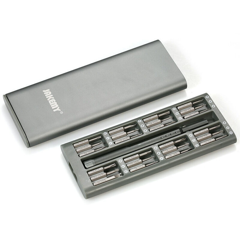 Se stai cercando un set di cacciaviti efficiente e affidabile, questo è esattamente quello che stai cercando. Questo set di cacciaviti con punte magnetiche di precisione 24 in 1 ha 24 teste di cacciavite per orologi al quarzo, fotocamere, radio, computer, telefoni cellulari, ecc. Perfetto per fai da te, smontaggio di attrezzature di precisione, uso familiare, ecc. < br /> Specifiche: Materiale: lega di alluminio + S2 Dimensioni del cacciavite: 4 * 28 mm Durezza del prodotto: 58~62 Punte di precisione: Scanalato: 1.5 2.0 2.5 Phillips: 1.0 1.5 2.0 Torx: T2 T3 T4 T5 T6 T7 T8 Hex: H1.3 H1. 5 H2.0 Triangolo: 2.0 Tri-wing: Y0.8 Y2.5 Pentalobe (Stella): 0.8 1.2 2.0< br /> A forma di U: U2.6 Stand off: +1.5 Dimensioni impugnatura: 125 * 11 mm />Utilizzo adatto: smartphone, console di gioco, tablet, PC, elettronica, computer, orologio iOS, riparazione di occhiali, riparazione di gioielli, ecc. Dimensioni della cassa: ca. 168 * 66 * 15 mm / 6,6 * 2,6 * 0,6 pollici Peso del prodotto: ca. 199 g