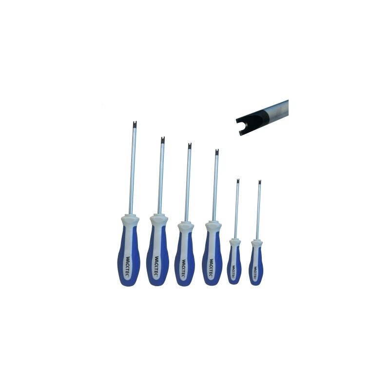 Set cacciaviti ad U (spanner head) in cromo vanadio 6150 solido e inossidabile. Manico in resina di protezione e raccordo struttura a doppia iniezione. Il terminale del manico e la piena lunghezza della barra puo' essere martellata Punta magnetica Caratteristiche Tecniche Dimensioni (mm): - U2x75x3 - U4x75x4 - U6x75x5 - U6x100x5 - U8x100x6 - U8x150x6
