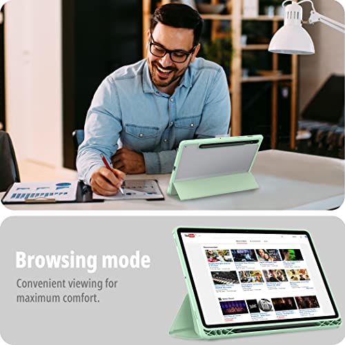 CACOE Cover Custodia Compatibile con Samsung Galaxy Tab S8 2022/ S7 da 11 Pollici, con Retro Trasparente e Portapenne, Funzione Auto Sleep/Wake per Tablet Samsung Tab S8 2022/ S7 2020, Verde