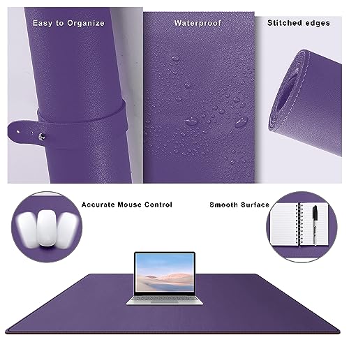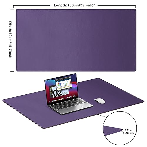 Cacoy Tappetino da scrivania da ufficio, Grande Sottomano da scrivania in pelle PU, 100x50cm Impermeabile Tappetino per mouse per ufficio e casa (Viola)
