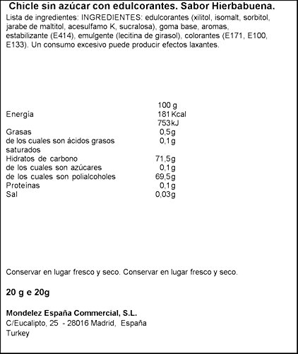 Allergeni: senza zucchero, dolcificanti. Contiene sorbitolo e una fonte di fenilalanina