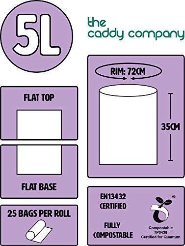 The Caddy Company 5 Litri (5L) Sacchetti compostabili per rifiuti Caddy, 100 Sacchetti