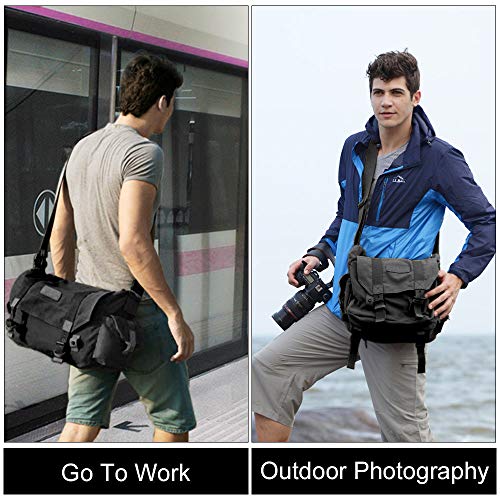CADeN Borsa per fotocamera reflex, borsa per fotocamera a tracolla per fotocamera, con materiale impermeabile e imbottitura staccabile, compatibile con fotocamere reflex Canon Nikon Sony(nero)