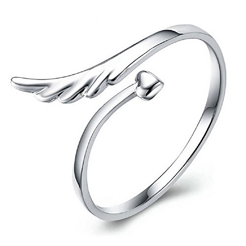 Cadoline Placcato Argento Ala Squillare Taglia 17 (IT) 8 (US) Regolabile Aperto Freccia Ali di Amore Pollice Cuore Angelo