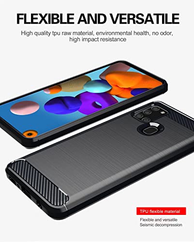 Cadorabo Cover per Samsung Galaxy A21s in NERO SPAZZOLATO - Cover per Cellulare Realizzata in Silicone TPU in Acciaio Inox Fibra di Carbonio - Cover Protettiva Custodia Morbida Ultra Sottile