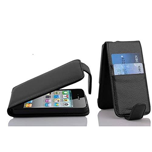 Cadorabo Custodia per Apple iPhone 4 / iPhone 4S in NERO PROFONDO - Protezione in Stile Flip con Vani di Carte - Case Cover Wallet Book Etui