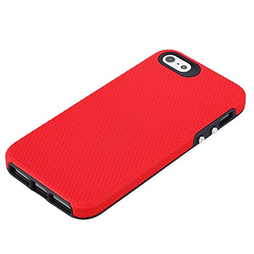 Cadorabo Custodia per Apple iPhone 5 / iPhone 5S / iPhone SE in Rosso Garofano - Outdoor Cover in Design Triangle con Extra Presa Superficie Antiscivolo in Silicone e Plastica - Back Hard Case Bumper
