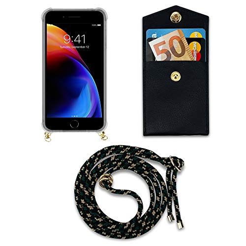 Cadorabo Custodia Collana per Apple iPhone 7 / 7S / 8 / SE 2020 in CAMOUFLAGE Case a Tracolla - Cover Laccio per Il Collo in Silicone Trasparente con Anelli Ori, Cordino e Borsello Rimovibile