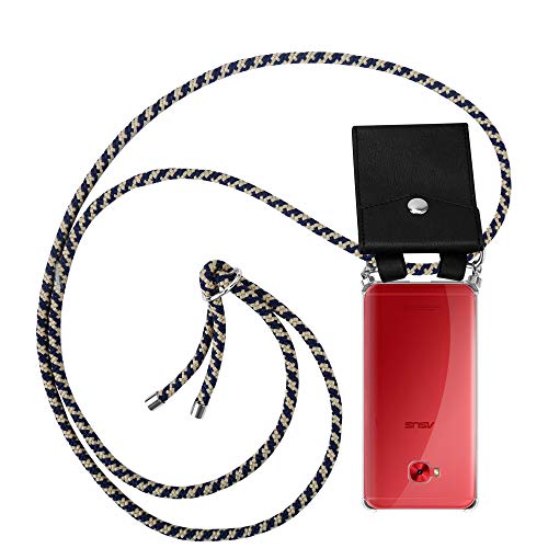 Cadorabo Custodia Collana per Asus ZenFone 4 Selfie PRO in BLU SCURO GIALLO Case a Tracolla - Cover Laccio per Il Collo in Silicone Trasparente con Anelli Argenti, Cordino e Borsello Rimovibile