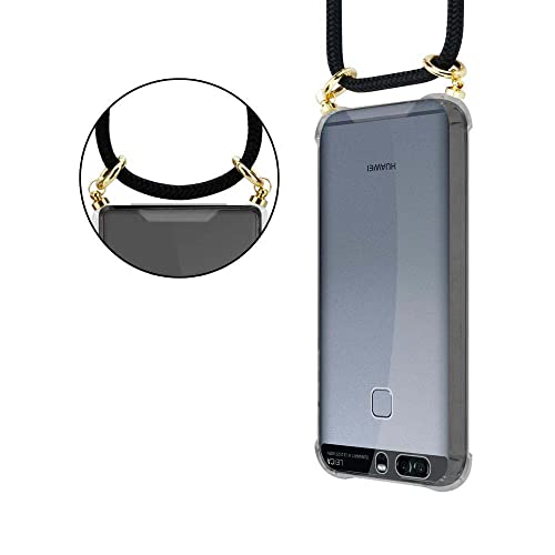 Cadorabo Custodia Collana per Huawei P9 in Nero Case a Tracolla - Cover Laccio per Il Collo in Silicone Trasparente con Anelli Ori, Cordino e Borsello Rimovibile
