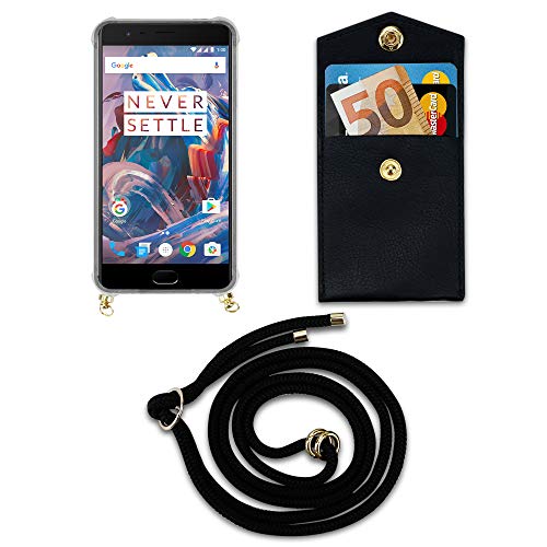 Cadorabo Custodia Collana per OnePlus 3 / 3T in NERO Case a Tracolla - Cover Laccio per Il Collo in Silicone Trasparente con Anelli Ori, Cordino e Borsello Rimovibile