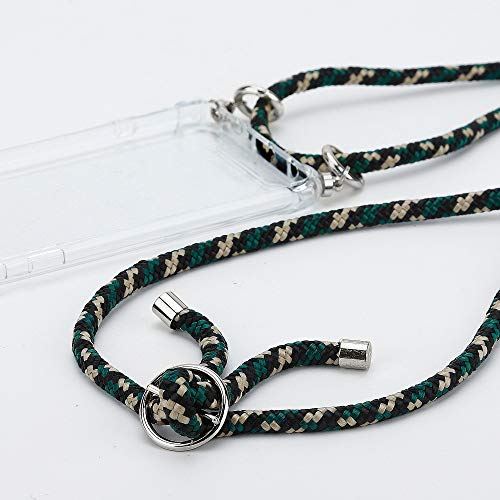 Cadorabo Custodia Collana per Samsung Galaxy A51 in CAMOUFLAGE Case a Tracolla - Cover Laccio per Il Collo in Silicone Trasparente con Anelli Argenti, Cordino e Borsello Rimovibile