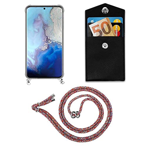 Cadorabo Custodia Collana per Samsung Galaxy S20 in COLORFUL PARROT Case a Tracolla - Cover Laccio per Il Collo in Silicone Trasparente con Anelli Argenti, Cordino e Borsello Rimovibile