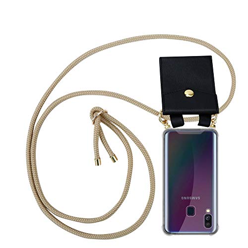Cadorabo Custodia Collana per Samsung Galaxy A40 in Marrone Brillante Case a Tracolla - Cover Laccio per Il Collo in Silicone Trasparente con Anelli Ori, Cordino e Borsello Rimovibile