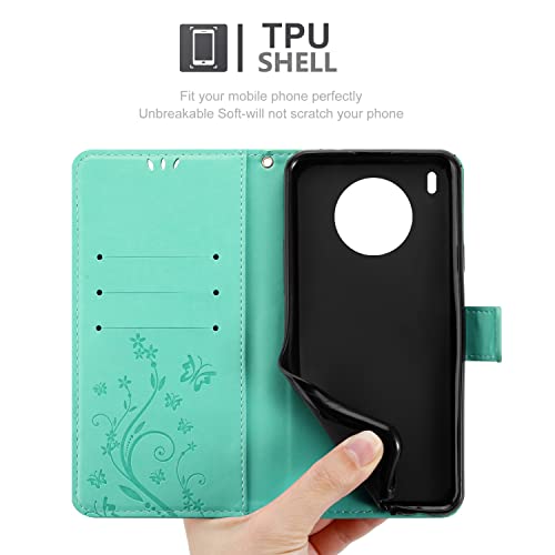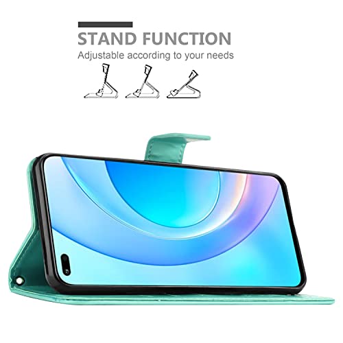 Cadorabo Custodia compatibile con Honor 50 LITE in TURCHESE FIORE - Coperchio protettivo in design floreale con chiusura magnetica, funzione stand e slot per carte