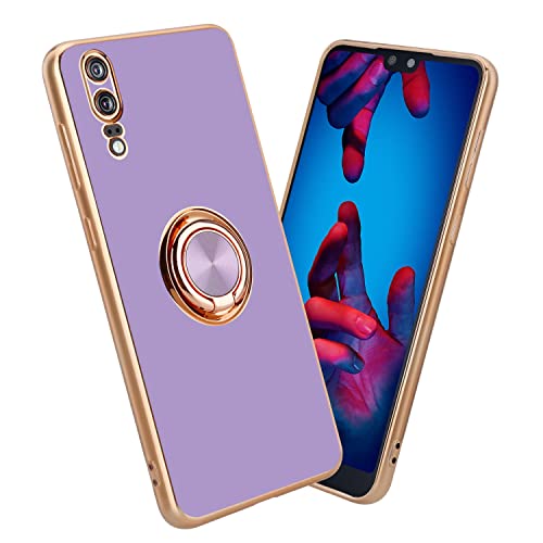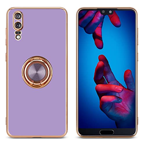 Cadorabo Custodia compatibile con Huawei P20 in Glossy Viola Chiaro - Oro con anello - Coperchio in silicone TPU flessibile, con protezione per la fotocamera e supporto magnetico per l'auto